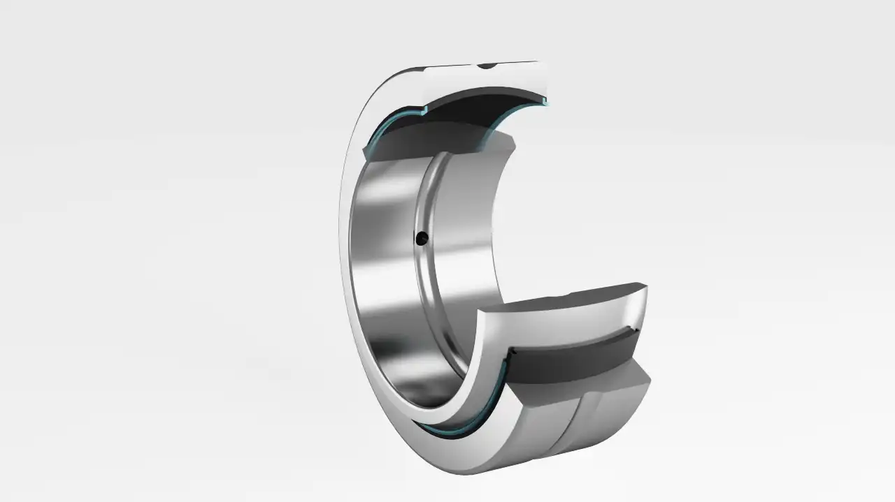GE..C (免维护型): 外圈内侧带有自润滑 PTFE (聚四氟乙烯) 复合衬垫。它无需加油,非常适合润滑困难、无法加油或对清洁度有严格要求的工况。